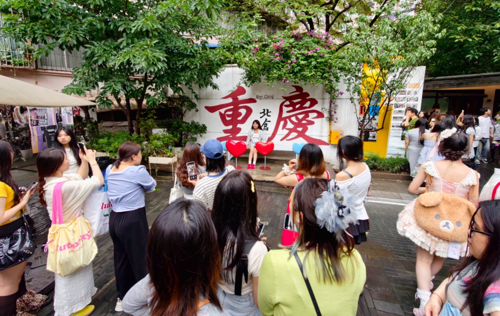 ▲5月31日,江北区北仓文创街区,游客在此拍照打卡。(资料图片)记者 崔力 摄